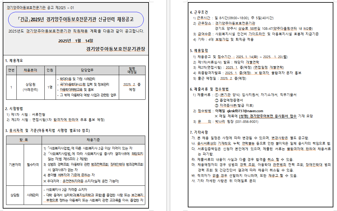 (2025-1차) 경기양주아동보호전문기관 신규인력 채용 공고.hwp